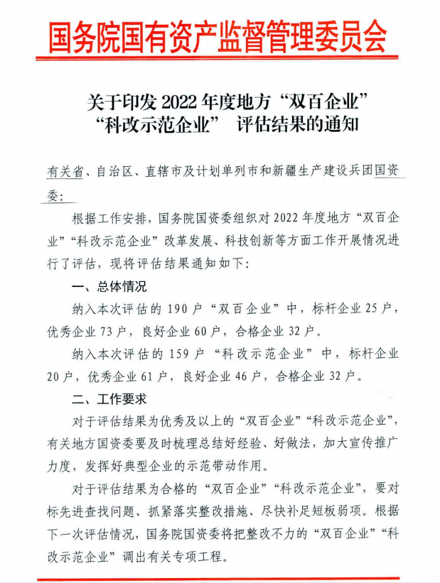 近日,国务院国资委发布《关于印发2022年度地方“双百企业”“科改示范企业”评估结果》,江铃集团在“双百企业”评估中获评优秀等级。此前,江铃集团先后荣获国务院国资委授予的“管理提升标杆企业” “国有企业公司治理示范单位”。